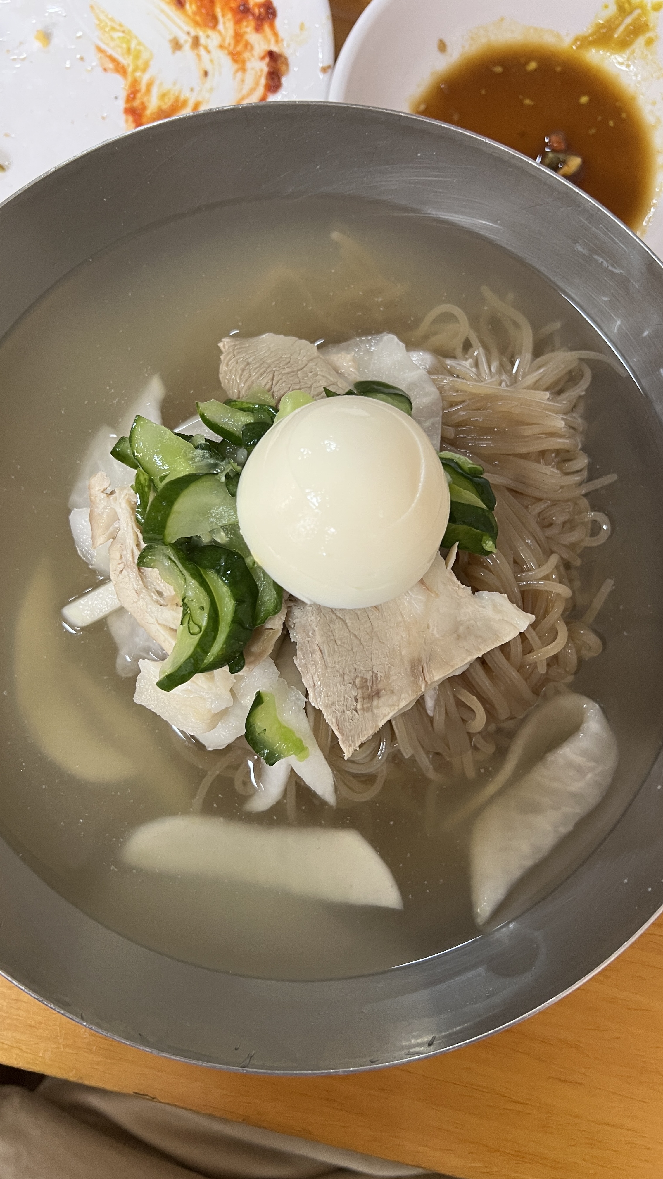In addition to their signature cold noodles, Buwon Myeonok also offers crispy and well-grilled Bindaetteok (빈대떡), a traditional mung bean pancake, which pairs perfectly with the noodles. If you're feeling adventurous, be sure to try their unique seasoned chicken (cold dish 닭무침), a dish that captivates guests with its distinctive flavors.