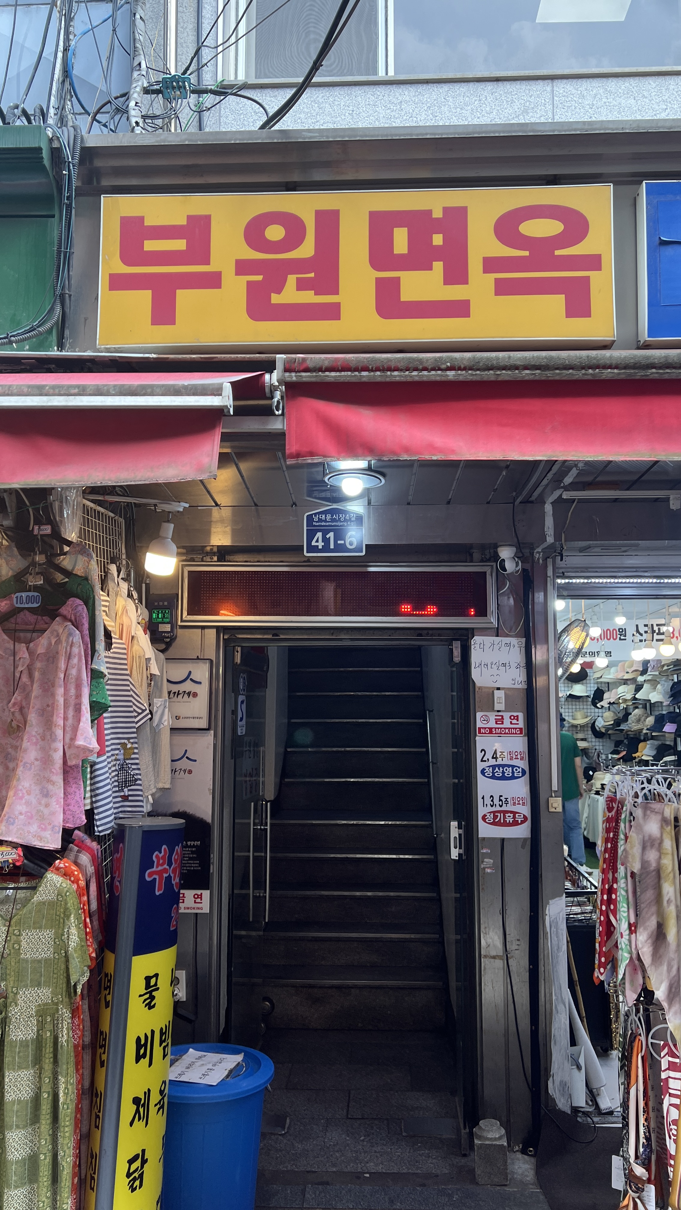 The restaurant's address is 41-6 Namdaemun Market 4-gil, Jung-gu, Seoul, and it operates from 11:00 AM to 8:00 PM daily, with the last order accepted at 7:50 PM. Please note that Buwon Myeonok is closed on the 1st, 3rd, and 5th Sundays of each month.